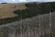 Last month, Gallatin National Forest biologist Jodie Canfield hiked through thickly forested slopes around an old mining district at Cooke City, Mont., just outside Yellowstone. She was marking points for a thinning experiment in a place that has resisted beetles, perhaps because it's buffered by the high, cold Beartooth Plateau.