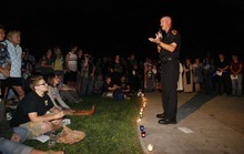 Dane Hall, who was "curb checked" after leaving a gay-themed night at Club Sound in Salt Lake City two weeks ago, attended the vigil. His assailants shattered his cheek bone and broke his jaw. Thousands of dollars have been donated to help pay for Hall's medical bills, which he has said surpass $40,000 because he does not have insurance.