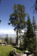 Beneath it are a few small whitebarks struggling to stretch skyward, including a 4-foot stick bent to the shape of a plumber's elbow pipe by snow or the memory of a downed log.