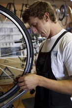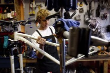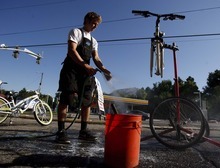 Business is brisk for Keith Hickey, a bike mechanic at Cottonwood Cyclery in Cottonwood Heights, because he says, "people are fixing their bikes instead of buying new ones."