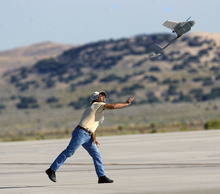 After the aircraft launched from Michael Army Airfield, reporters watched from inside a hangar as what looked like a massive video game  with a touch of remote-control airplanes  unfolded on large screens.