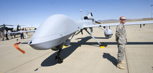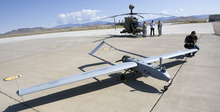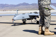 In the near future, a lone soldier will be able to carry a drone in a backpack, unfold and launch it and then control its payload  or optics and video stream. At present, such a soldier can do all but control the camera. Another future technology, demonstrated Thursday on the Gray Eagle unmanned aircraft, will put three cameras on one craft, allowing "eyes" on spots on the ground miles apart.