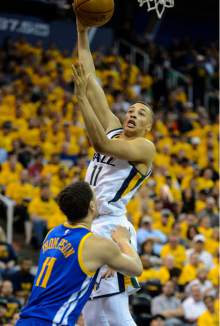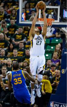 The crowd of 19,000-plus fans, decked out in gold and blue and green, roared as forward Derrick Favors dunked on Golden State's Draymond Green. Jazz point guard Dante Exum, meanwhile, scored 11 first-half points as Utah trimmed the Warriors' lead down to eight points in the first half, and six points in the third quarter.