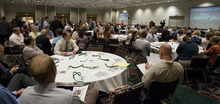Officials divided into small groups to talk and write about concerns and try to identify problems that must be overcome to achieve the vision.