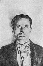 Magnus Olson, aka Madmus Morton, aka Magnus Morgan, aka Frank Z. Wilson, aka James Franklin, aka James Franklyn, aka James Farmer, aka Harry Fuller, aka ... (there are at least 16 aliases) was fresh from a bout of mayhem in Nevada when police picked him up on the street in front of the murdered grocer's store hours after the killing.