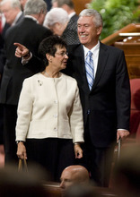 Monson then offered his traditional welcome and announced five new temples: a restored Provo Tabernacle converted into a second temple in that Utah County hub; Star Valley, Wyo; Kinshasa, Democratic Republic of Congo; Durban, South Africa; and Barranquilla, Colombia. Work is moving forward in France on the Paris temple as well.