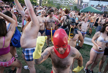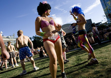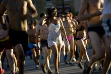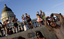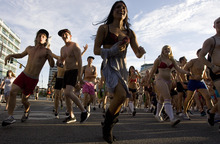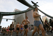 From the Gallivan Center, the scantily-clad runners bounced toward the state Capitol and back, roughly 5 miles, then concluded with a rally that included food, drink and music late into the evening.