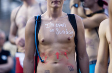 Undie Run organizer Nate Porter said the goal of the Utah event was to organize people frustrated by the conservative nature of the state's politics. Some participants ran with messages written on their chests, backs or legs in support of causes like gay marriage, which had been opposed by the state's predominant Mormon faith during California's Prop 8 ballot battle.