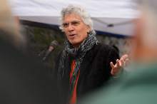 And the 100 or so people chanting "Talk to us!" as he spoke?
