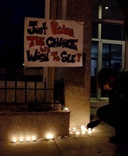 "We agree to that," McGuire says, as others approach the candles to collect them. But some of the demonstrators hesitate.