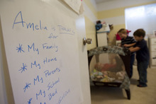 Visit their household today, and you'll see a "Grateful List" written in colored crayon on all their bedroom doors. The list of reasons to be grateful range from life's necessities "bed" and "family" come up for frequent mention to the exotic Daniel, 8, is partial to Pokémon. They even fall into the political realm, with 7-year-old Amelia grateful for President Barack Obama.