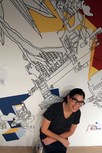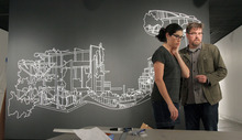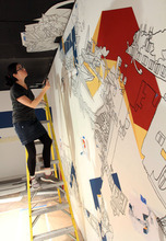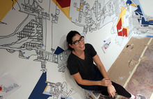 Schoenstadt's exhibition includes other forays into conceptual art, some of which also involve the viewer. "Paint by Numbers (and Shapes)" allows gallery visitors to choose colors for the numbered shapes in a wall-size architectural mash-up that includes buildings in Salt Lake City. At the end of each week, assistants paint in the colors. (Price explains that allowing the patrons to apply the paint themselves would, unfortunately, run afoul of fire-safety regulations.)