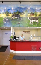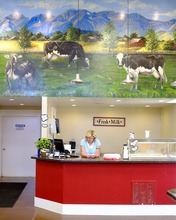 The creamery is in a large red barn on River Road, just past the roundabout in Midway. Inside, a case holds several types of food, along with glass quarts of raw milk. The store also sells local raw honey, jams and syrups and Aggie ice cream.