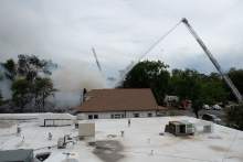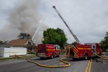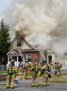 Firefighters from across the city battle a two house fire at 900 W. 151 S. in Salt Lake City that sent smoke across the city on Monday, May 15, 2017.