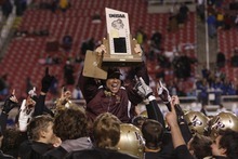 For Lone Peak, it's the first football title in school history. These Knights went unbeaten this year, and mostly unchallenged behind the wizardry of quarterback Chase Hansen, an explosive defense and an offense that has looked unstoppable at many times.