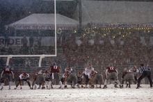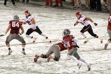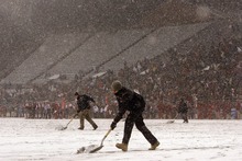 In each game, shovel crews had to clear snow off the field for lines to be seen. The surface at Rice-Eccles looked as though a Zamboni might work. At a half-empty Martin Stadium in Pullman, snow was stacked up everywhere, and that was before another front rolled in. The game-time temperature was 27 degrees, and it nose-dove from there. When the wind blew, it darn near ripped your face off.