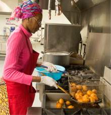 The dishes aren't prepared by restaurants or professional chefs, but rather cooks from area churches and community groups, many of whom use family recipes from their native country to create the menu.