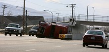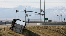 The Utah Highway Patrol reported 16 semis overturned by the wind on the state's highways Thursday, including three on Legacy Parkway and 10 more on Interstate 15 in Davis County, where winds lashed at 102 mph, said Cpl. Todd Johnson. None of the drivers suffered more than minor injuries.