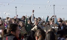 Hundreds of students at Eisenhower Junior High School try to set a new world record for t