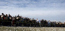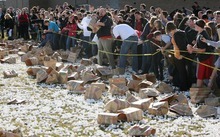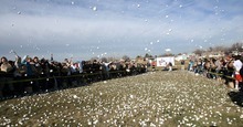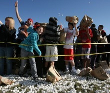 Hundreds of students at Eisenhower Junior High School try to set a new world record for the World's Largest Marshmallow Fight by throwing or tossing nearly 2,000 pounds of 140,000 regular-sized marshmallows in about 15 minutes.in Taylorsville, Utah Friday, December 2, 2011.