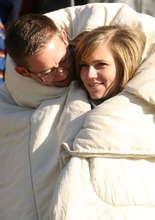 Snow College students Josh Burt and his girlfriend Hannah Olsen snuggle together in the fre