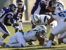 Snow College's Timote Vamanrav grabs the fumble in the 2nd quarter.