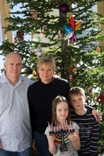 But the family also observes some Christmas rituals. They don't hang lights or display a Nativity, but the kids get gifts from Santa and eat a Christmas Eve dinner, and the family has a 20-foot-tall Christmas tree.