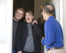 She was overjoyed when DiPalma rang her doorbell and presented her with the new furnace. But she didn't recognize Brent decked out as Santa Claus. Then he pulled down his beard and it was hugs and kisses.
