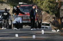 Investigation continues • In the aftermath of the shooting, police closed a portion of the quiet residential block that included Stewart's one-story home as a steady stream of police, Drug Enforcement Administration agents and crime scene technicians passed in and out. More than two dozen evidence markers dotted Stewart's lawn and crossed the street to a Church of Jesus Christ of Latter-day Saints wardhouse parking lot, where a collection of flowers and candles honored Francom. Bloodstains were visible on the street.