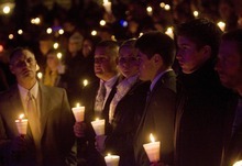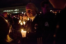 Outpouring of support • About 400 people came to the Ogden Amphitheater on Thursday night for a candlelight ceremony honoring Francom and the wounded officers.
