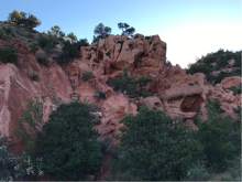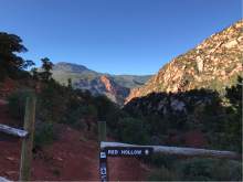 The trail up Red Hollow is also known as the Red Hills hike. It is the back side of the red hill visible from downtown Cedar City and is a good hike for anyone with a few extra hours during one of the city's theater festivals or in the morning or afternoon. The hike offers close views of the red rock and shade in the morning and late afternoon.
