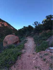 Red Hollow and Thor's Hideout connect on a saddle. From the Red Hollow trailhead, follow the trail north up the canyon. The trail is well marked, but steep in spots, and footing can be loose.