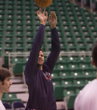 New Jersey Nets player Kris Humphries during warmup before game against the Utah Jazz at EnergySolutions Arena in Salt Lake City on Saturday.