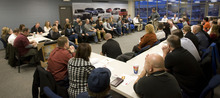 High is one of 70 Goldmine members who gathered early one recent morning at Murray's Larry H. Miller Chevrolet dealership for the chapter's weekly 90-minute session. Even though the cold winter night had barely receded, an infectious warmth and energy filled the room where members gave pitches, testimonials, referrals, thank-yous and presentations.