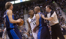 Watson intervened, approached Nowitzki and slapped the ball out of his hands.