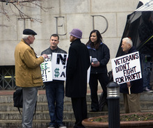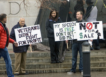 A former U.S. Marine who served in Iraq, Bodell carried a sign that read, "Veterans don't fight for profit."