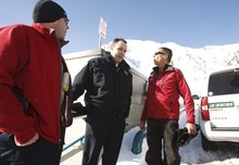 "The avalanche conditions are deceptively dangerous," said Craig Gordon, right, with the Forest Service Utah Avalanche Center talking with Unified Police Lt. Justin Hoyal, center, after one person died in an avalanche in the backcountry between Big and Little Cottonwood canyons on Saturday. A group of three people were skiing on Kessler Ridge, an area that drops down into Mineral Fork Canyon in Big Cottonwood Canyon, when the avalanche was triggered at about 11:30 a.m. Wasatch Backcountry Rescue and several other crews searched the area with dogs and were able to eventually locate the victim. Hoyal said the skier was found dead at the scene at about 12:45 p.m.