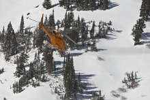 A Wasatch Powderbird helicopter flies in Little Cottonwood Canyon Saturday January 28, 2012. One person died in an avalanche in the backcountry between Big and Little Cottonwood canyons late Saturday morning. Unified Police Department Lt. Justin Hoyal said a group of three people were skiing on Kessler Ridge, an area that drops down into Mineral Fork Canyon in Big Cottonwood Canyon, when the avalanche was triggered at about 11:30 a.m.