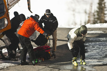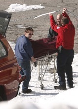 Medical Examiners take away the body of a skier who was killed in an avalanche. One person