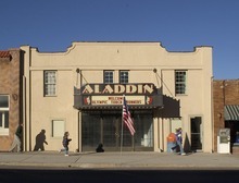 Kids run past the Aladdin Theatre in Parowan as they await the arrival of the torch.