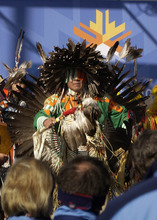 Frank Arrowchis, a member of the Whiteriver band of the Northern Ute Indian Tribe, performs a bl