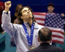 Short-track speedskater Apolo Anton Ohno won his first Olympic medal -- a silver -- after crashing on the final turn of the men's 1,000 meters at the Delta Center. Ohno went on to become the winningest American Winter Olympian, with eight career medals.