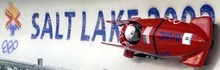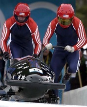American bobsledders Brian Shimer, right, and Darrin Steele -- now the head of the U.S. Bobsled & Skeleton Federation -- get started in the two-man competition at the Utah Olympic Park.