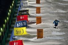Having watched McPhie put together the best run of the "final" round, Kearney blasted through her last run in the new "super final," clocking the fastest time of the night and performing a back layout off the first jump and a heli-mute grab off the second to win with a 84.03 points.