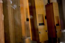 Also included in the exhibit are Ridges' saw, calipers and other tools; some of his original pipes; a commemorative pin from the 2002 Winter Olympics; a cane fashioned from one of Ridges' stops; and a collection representing the variety of recording technologies that have taken the organ's music around the world. Visitors can learn more and hear the celebrated instrument in action by watching a selection of videos featuring current organists Richard Elliott, Clay Christiansen, Andrew Unsworth, Goodliffe and Margetts.