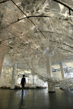 Instead, the steel rebar and thermoplastic sculpture, which fills 4,000 square feet of exhibit space, explores the "inscape" or the essence and deeper meanings of algae, Caron says.