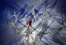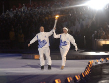 What a lineup of luminaries carried in the Olympic flag: South African civil-rights leader Desmond Tutu, Polish strike leader Lech Walesa, American astronaut-turned-senator John Glenn and Cathy Freeman, Aboriginal star of the Sydney Olympics. Joining them were filmmaker Steven Spielberg, environmentalist Jean-Michel Costeau and Olympic stars Jean-Claude Killy and Kazuyoshi Funaki.