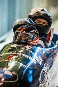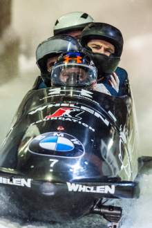 USA's Steven Holcomb, Frank Del Duca, Carlo Valdes and Samuel McGuffie compete during the