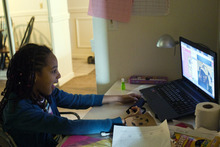 The couple also has Lina, 8, who on Friday was video-messaging with her father, a medical student who has returned to Ukraine for this semester's classes.