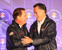 Romney didn't talk politics on either occasion. Both speeches heaped praise on the group effort that produced the successful Games. Romney avoided any claims that he had saved the Salt Lake City Olympics after the bribery scandal erupted late in 1998, taking out SLOC's top management and 10 International Olympic Committee members.